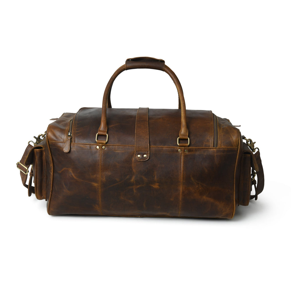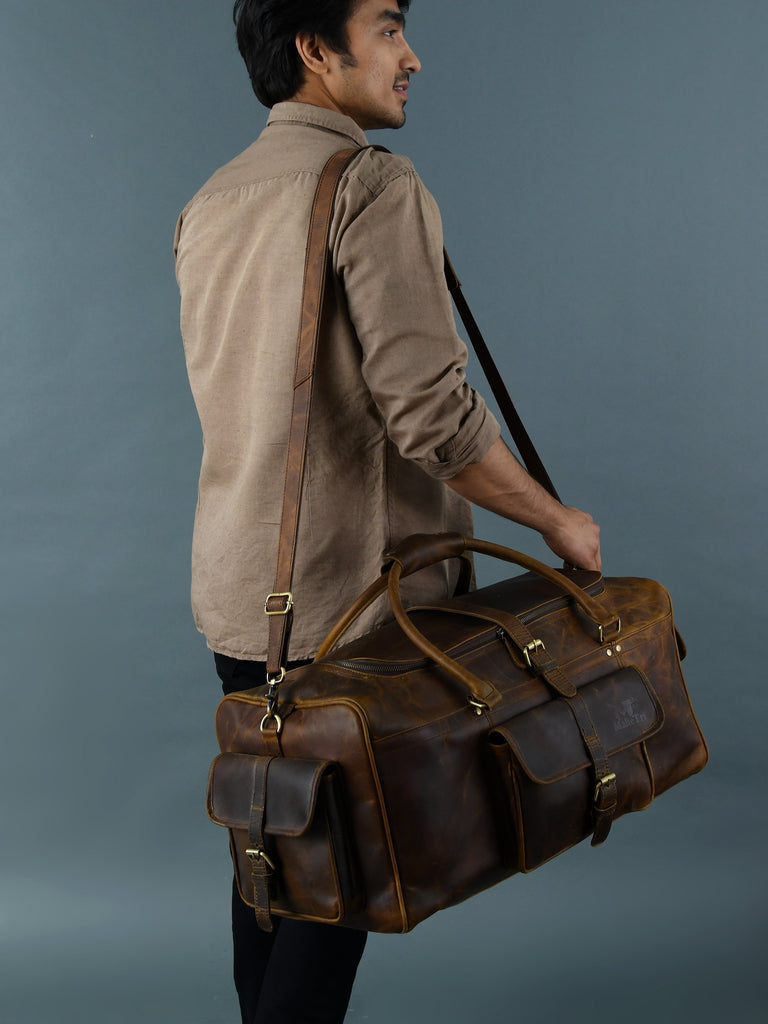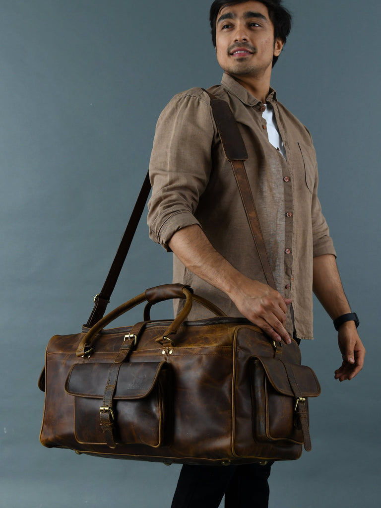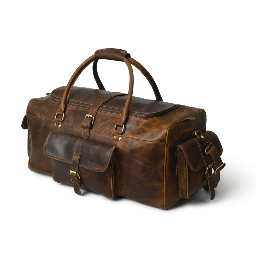 Our Goldman II buffalo leather duffel bag is the perfect weekend gateway partner for you because it is spacious, super stylish, and functional to carry all your travel necessities. This duffel makes a great carry-on for travel. Made from top-grain buffalo leather, this bag is handcrafted by skilled craftsmen to last for years.