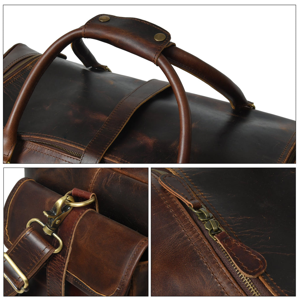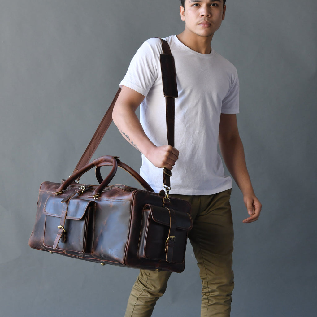 A travel leather duffel bag is a must-have accessory in a men’s wardrobe. This travel duffel bag is handcrafted from thick full-grain buffalo leather to look sophisticated, premium, and stylish. With being eye-catchy this duffel bag is also functional and provides extra storage for your travel necessities and is versatile to be used as a gym bag, overnight weekender, or as a carry-on duffel bag.