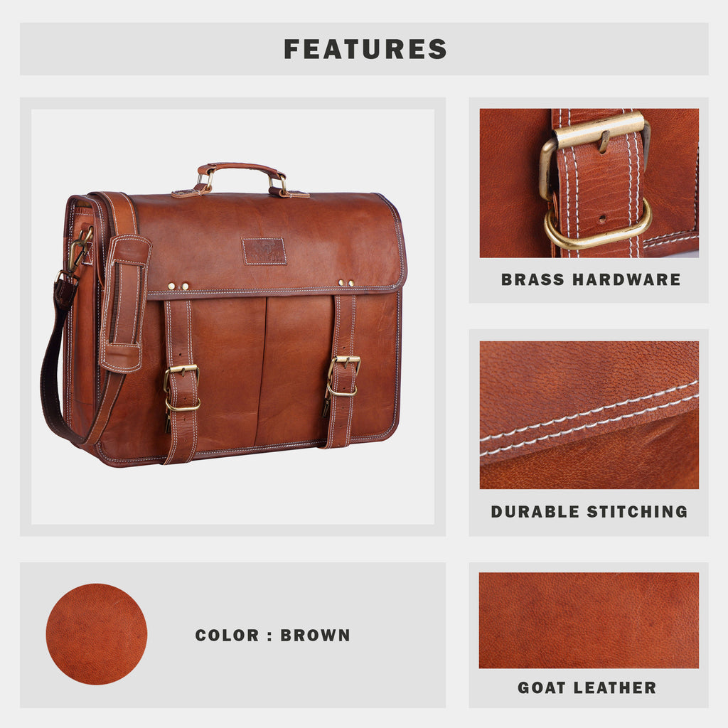 This exotic leather messenger bag is an ideal style statement for all those handsome men out there who never compromise with their class and sophistication. for carrying your Notebook or a small laptop. The handsome appeal and the vintage vibes make a wannabe accessory among all our customers. We never compromise with our product's aesthetics, thus premium quality full-grain goat leather has been used to manufacture this leather bag.