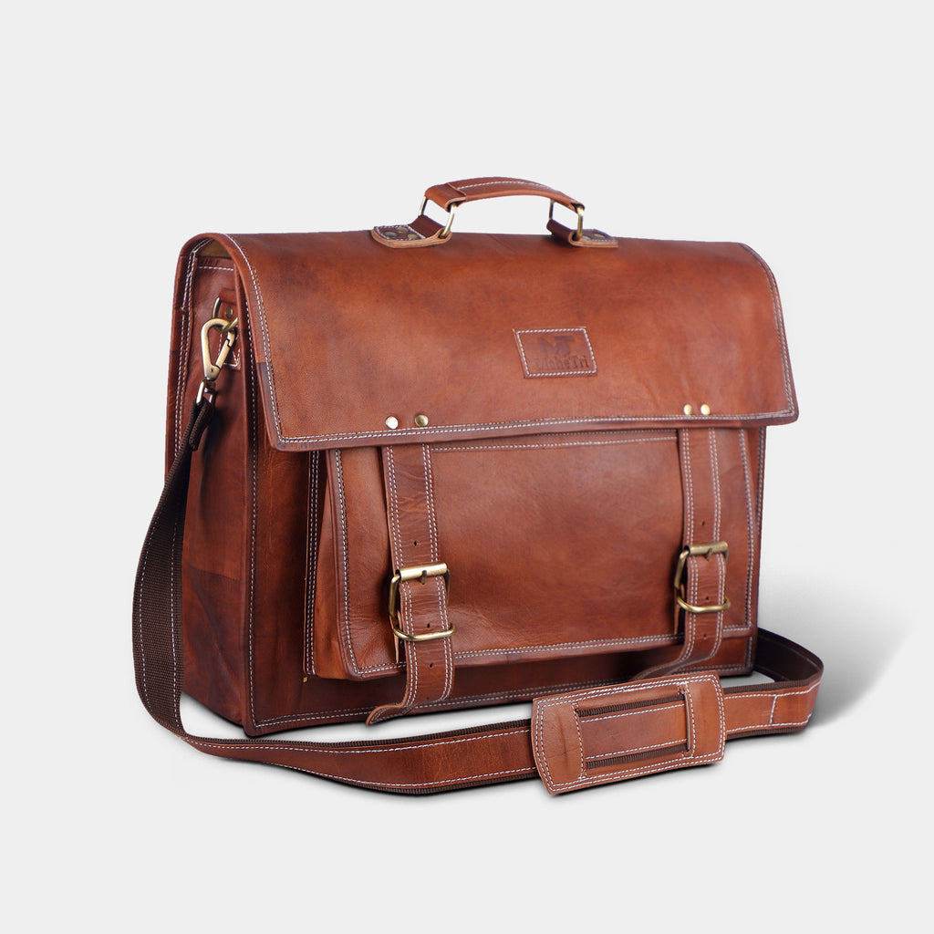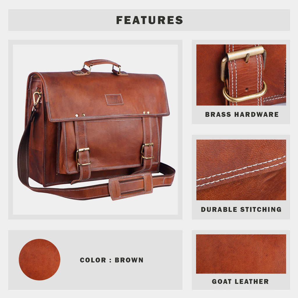 This exotic leather messenger bag is an ideal style statement for all those handsome men out there who never compromise with their class and sophistication. for carrying your Notebook or a small laptop. The handsome appeal and the vintage vibes make a wannabe accessory among all our customers. We never compromise with our product's aesthetics, thus premium quality full-grain goat leather has been used to manufacture this leather bag.