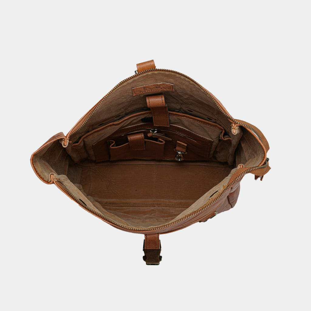 From the outside, this bag will give the vintage “roll-top” vibe with modernization. This bag comes with a front pocket which gives easy access to all your belongings.
