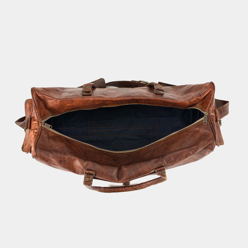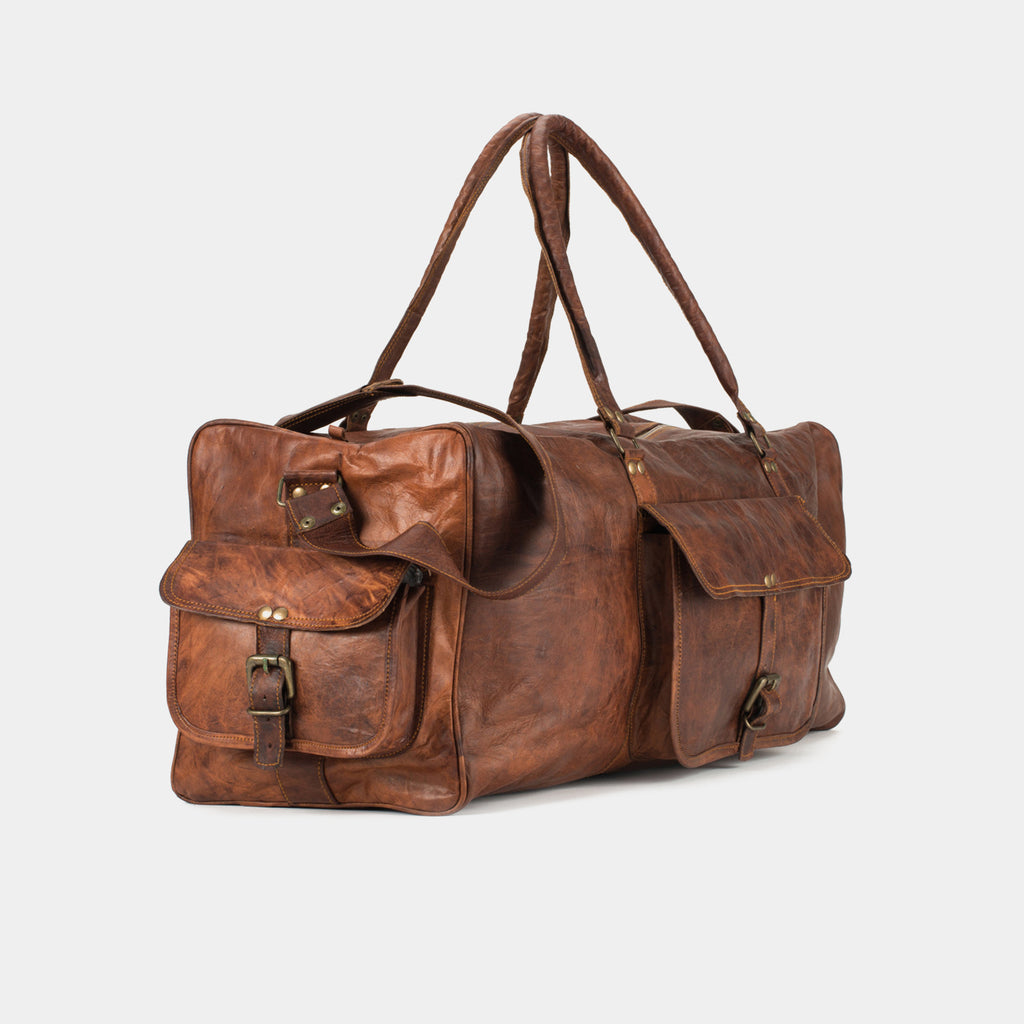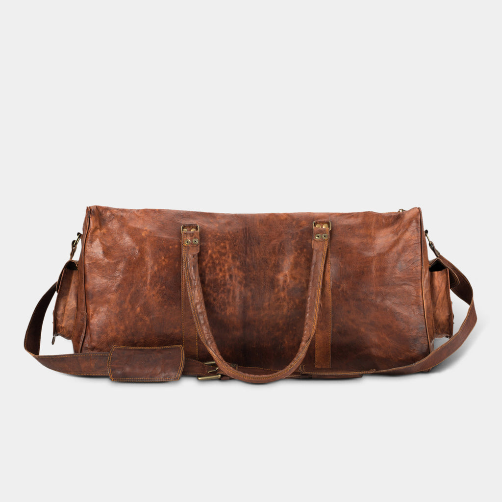 This posh portland duffle bag is exclusively handcrafted to suit your sophisticated standards. This oblong-shaped weekender bag is made of the finest quality goat leather emphasized with elaborate and minute detailing on the stitches.
