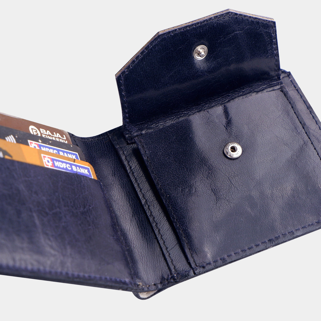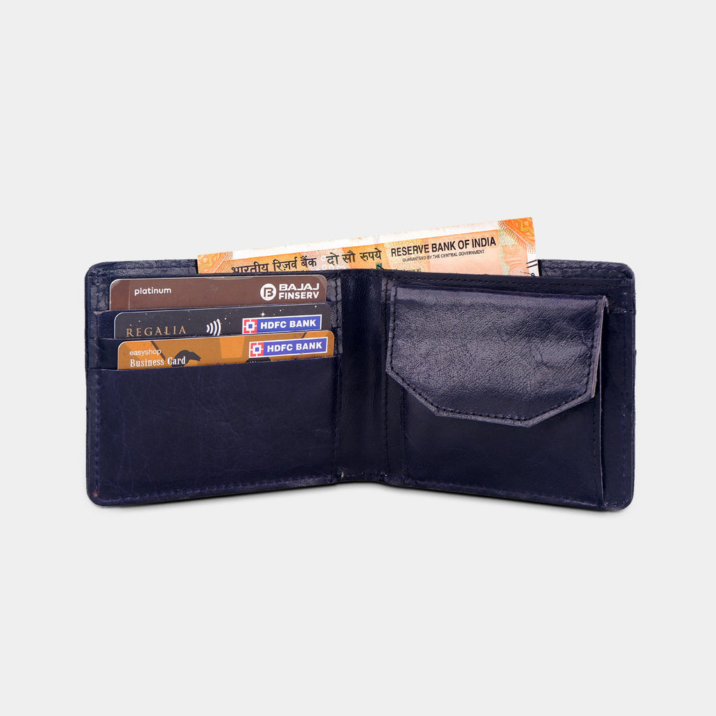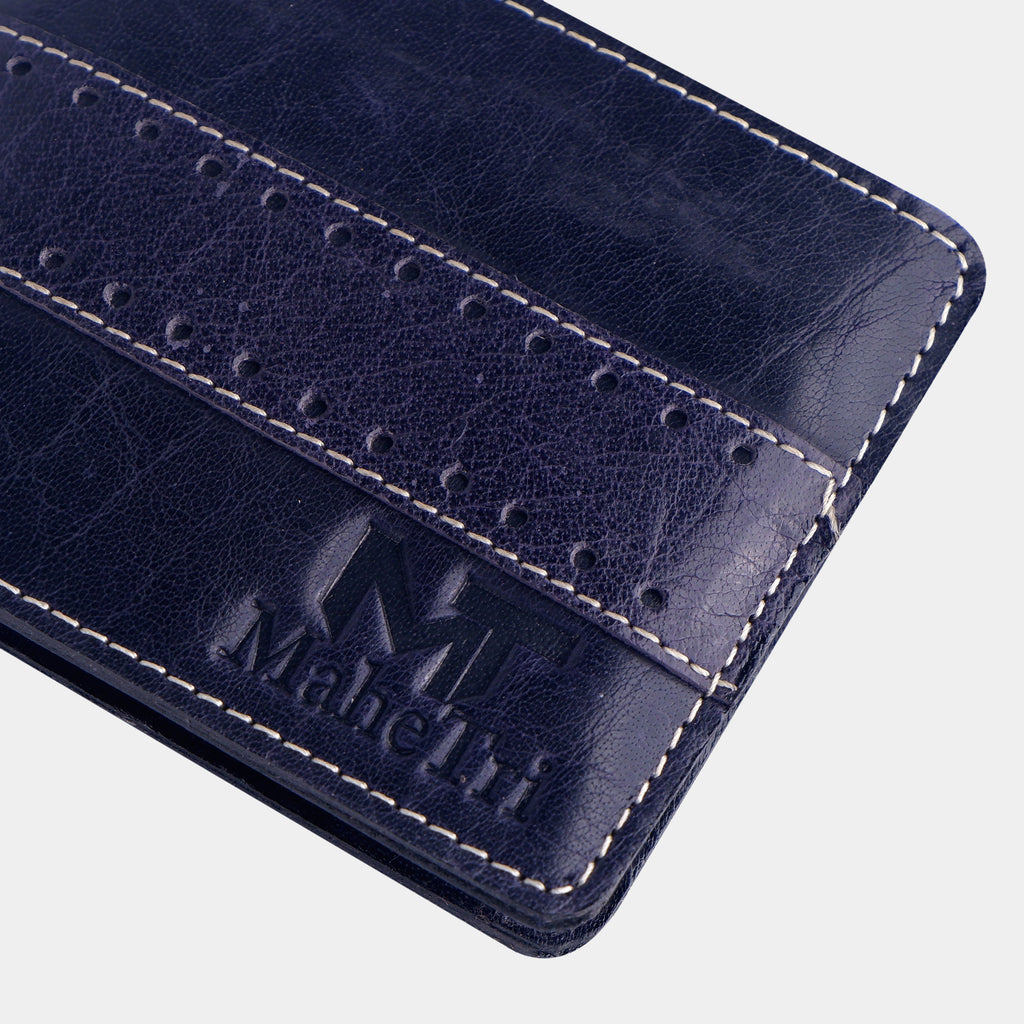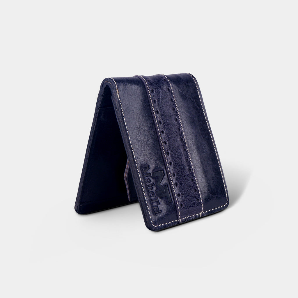 A slim, vertical bi-fold wallet that can hold multiple cards and bills in the internal card slots. Features an multiple sections for easy access to your IDs and cards.
