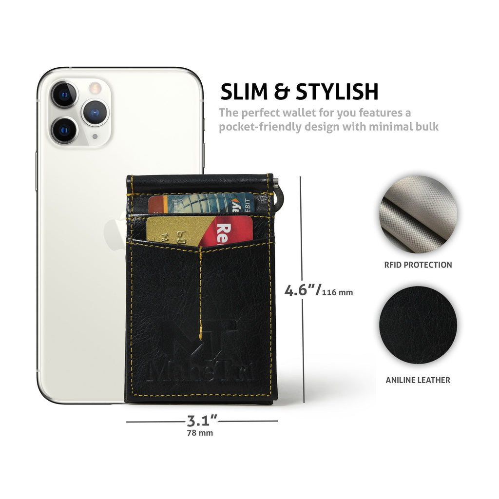 A beautifully crafted very slim profile money clipper wallet for men. It is handcrafted from buffalo leather by highly skilled artisans from Jodhpur. This money clipper wallet features a few card slots, an Id slot, and an interior money clip that keeps the cash organized and safe.