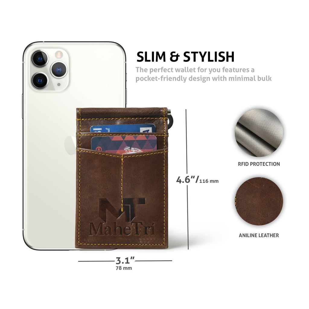 A beautifully crafted very slim profile money clipper wallet for men. It is handcrafted from buffalo leather by highly skilled artisans from Jodhpur. This money clipper wallet features a few card slots, an Id slot, and an interior money clip that keeps the cash organized and safe.